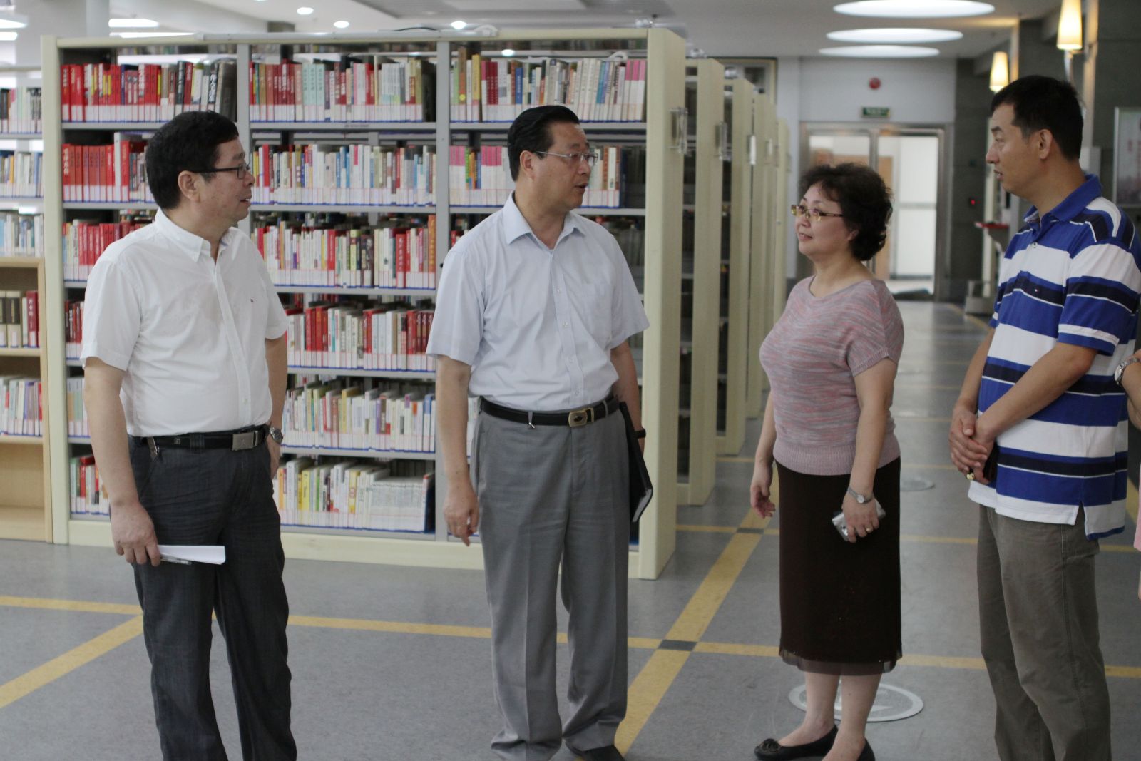 2012年9月9日上午,新学期第一天,校领导阮显忠书记、胡寿根校长一行到图书馆(网络中心)视察新学期开馆前的准备情况。图书馆(网络中心)朱云仙馆长向校领导详细汇报了图书馆暑期建设及开馆准备工作情况,并陪同校领导对图书馆各类阅览室、流通书库、公共服务区等环境进行了视察。
