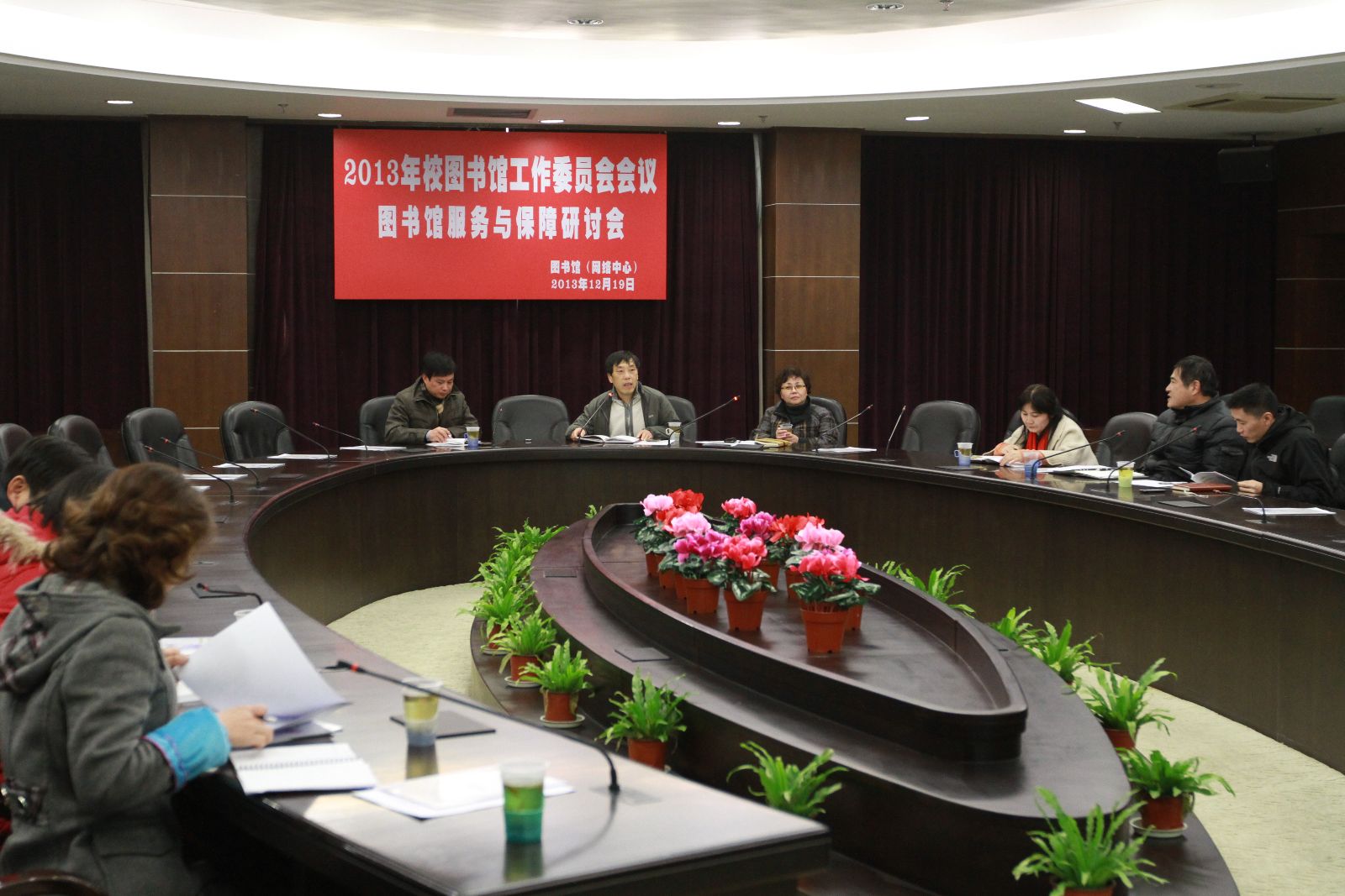 图书馆相关业务负责人就2013年度图书馆基础建设、文献资源建设、“校十大实事工程—教师阅览室建设”及基于信息技术为基础的“大数据”提升服务质量等情况在会上作了汇报。