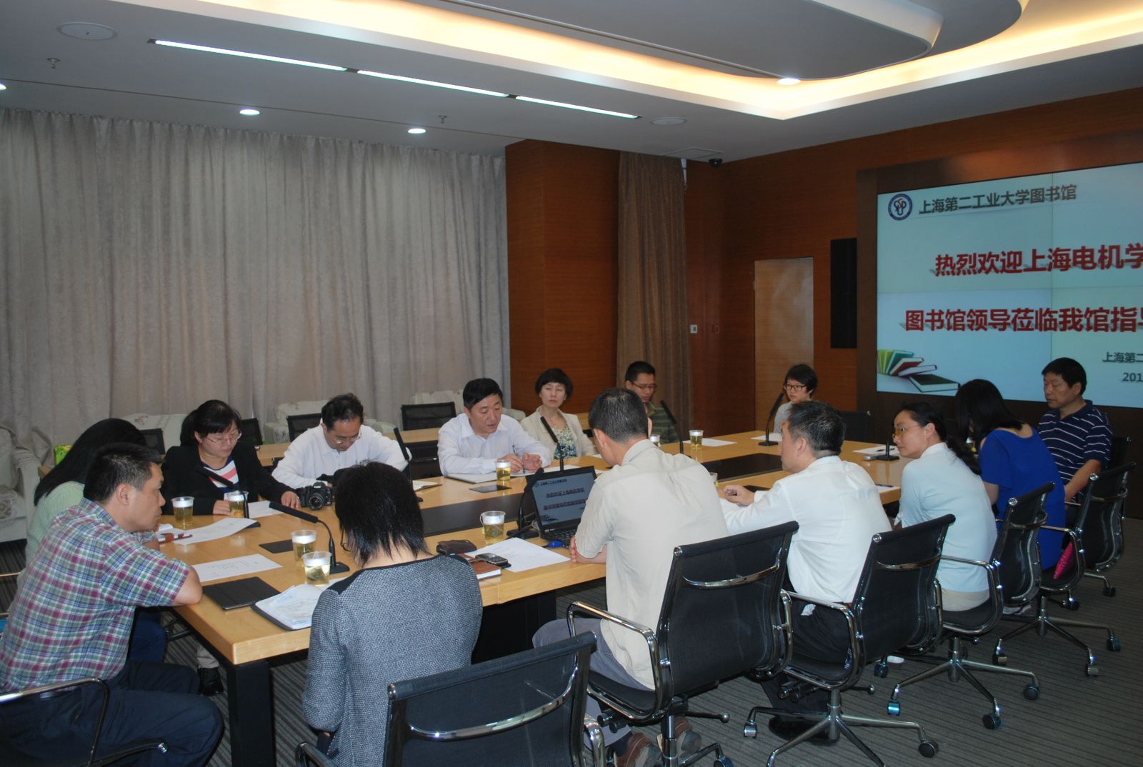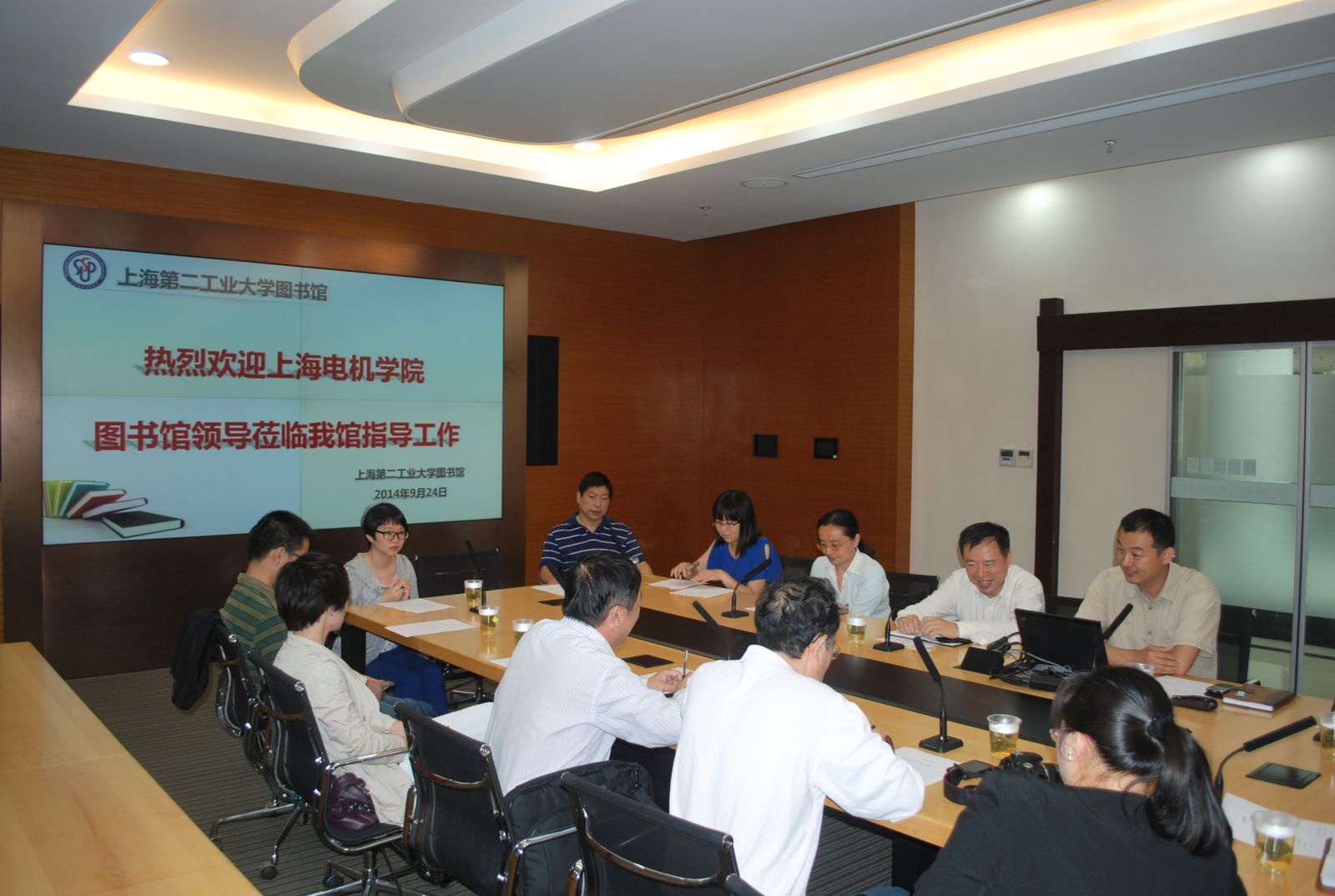 2014年9月24日上午,上海电机学院图书馆馆长汤学华教授一行7人来我校图书馆进行了交流研讨。会议由吴珞馆长主持,图书馆各部室主任出席了会议。