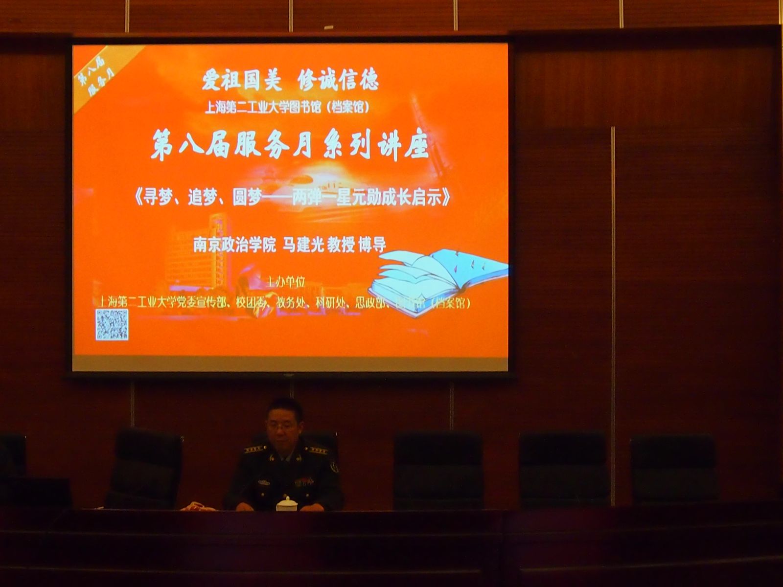 12月10日,南京政治学院马建光教授作了主题为“寻梦 追梦 圆梦——两弹一星元勋成长启示”的讲座。马教授从“钱学森之问”说起,探究、承载和发扬“两弹一星”元勋的成才之路,期间展示了大量的事例和图片,以此说明他们的成才之路绝非偶然,而是几代人文化心血的结晶和个人天赋加上长期努力的结果。马教授又从科学强国梦想的追寻,民族复兴伟业的际会,优良传统文化的哺育,欧美科学精神的滋养,科学人文艺术的联姻,名校名师知行的传承,艰苦卓绝求知的内修七个方面展开具体论述元勋成长启示。
