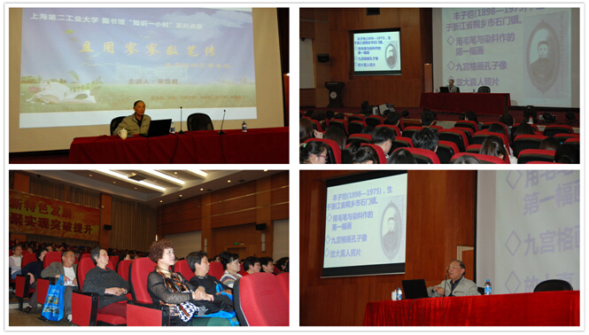 开幕式后,领导、嘉宾、曹路社区的居民们饶有兴致地参观了“丰子恺漫画精品展”主题文化展。宋雪君先生还为大家作了题为《“且用寥寥数笔传”——丰子恺的艺术生涯》的讲座,宋先生从丰子恺的黑白漫画、彩色漫画与“护生画集”着手,再现了丰子恺的艺术生涯,并与师生共同探讨弘一法师与丰子恺先生著名的“三层楼”思想。讲座受到师生热烈欢迎。
