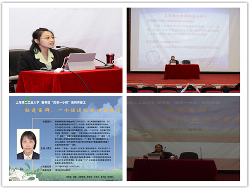 作为图书馆第五届“读书周”的压轴活动,2015年4月29日下午13时,图文信息中心的400人报告厅座无虚席,由思政部、科研处和图书馆(档案馆)共同邀请的华东理工大学生物工程学院研究员谢静莉博士带来的题为“肠道菌群,一个被遗忘的功能器官”的讲座如期开讲。