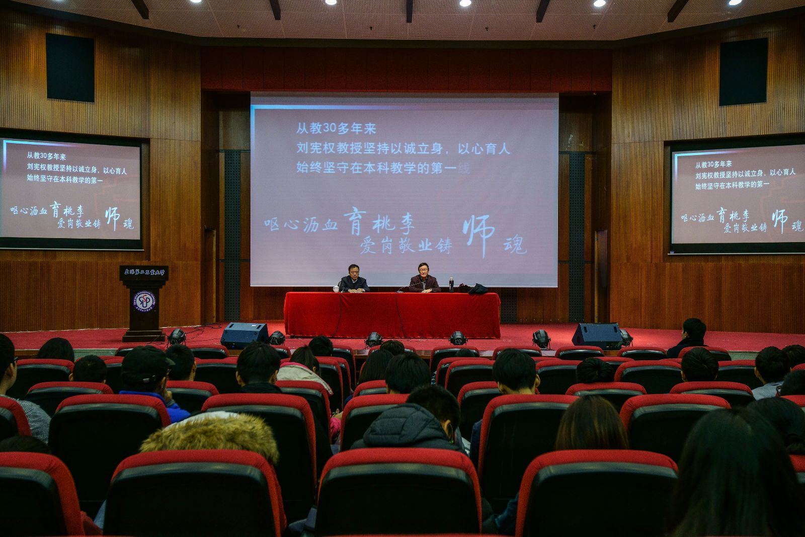 11月30日,全国劳模、上海市教育功臣、国家教学名师、全国优秀教师、全国先进工作者、宝钢教育基金全国优秀教师、上海市教书育人楷模刘宪权教授在我校400人报告厅作了题为“读书、教学、科研、做人”的专题讲座。讲座系我校图书馆(档案馆)“服务月活动”系列讲座之一,由我校图书馆(档案馆)吴珞教授主持。