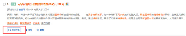 根据资源来源和合作方式,平台对学位论文提供全文直接下载和原文传递两种获取方式。以新增的增强版学位论文资源为例,用户可以通过【原文传递】方式来获取全文。填写原文传递所需信息,包括接收传递文献的邮箱地址和本人手机号,即可申请原文传递。